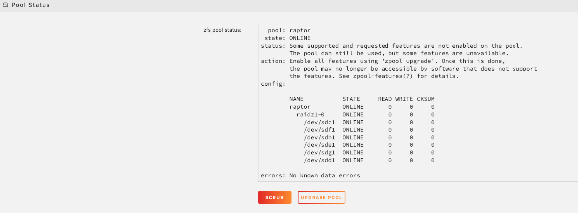 En Estado del Pool, verifica el estado y haz clic en Scrub.