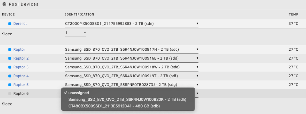 - 示例: 对于具有 4 个驱动器镜像 vdev 和 2 个驱动器 L2ARC vdev 的池,设置 6 个插槽并分配所有六个驱动器。